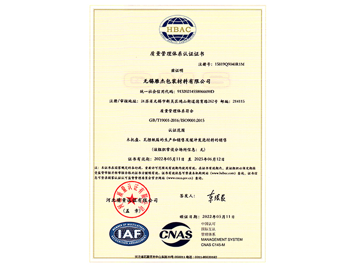 鹽城市君雁包裝科技有限公司,始創(chuàng)于2021年,公司面積20000平方米。公司位于中國鹽城大豐區(qū)南陽鎮祥西村三組,是一家集研發(fā)、生產、銷售為一體的包裝材料企業(yè),產品涉及:外包裝紙箱,防水紙箱,涂蠟紙箱,浸蠟紙箱,冷柜紙箱,木包裝箱,免熏蒸木包裝箱,木托盤,EPE珍珠棉,珍珠棉袋,EVA板材,EVA大板,包裝海綿等包裝材料。包裝設計制造符合API、ANSI、ASTM、NACE、ISO、EN、BS、DIN、MSS SP等國際標準的要求,在鹽城以及周邊城市的市場上有良好的評價。公司擁有先進的生產設備,嚴格的管理制度和高素質的人才團隊,保證了高質量的產品和良好的服務,同時我司還可以根據客戶特殊工況需求,提供全套包裝技術解決方案。